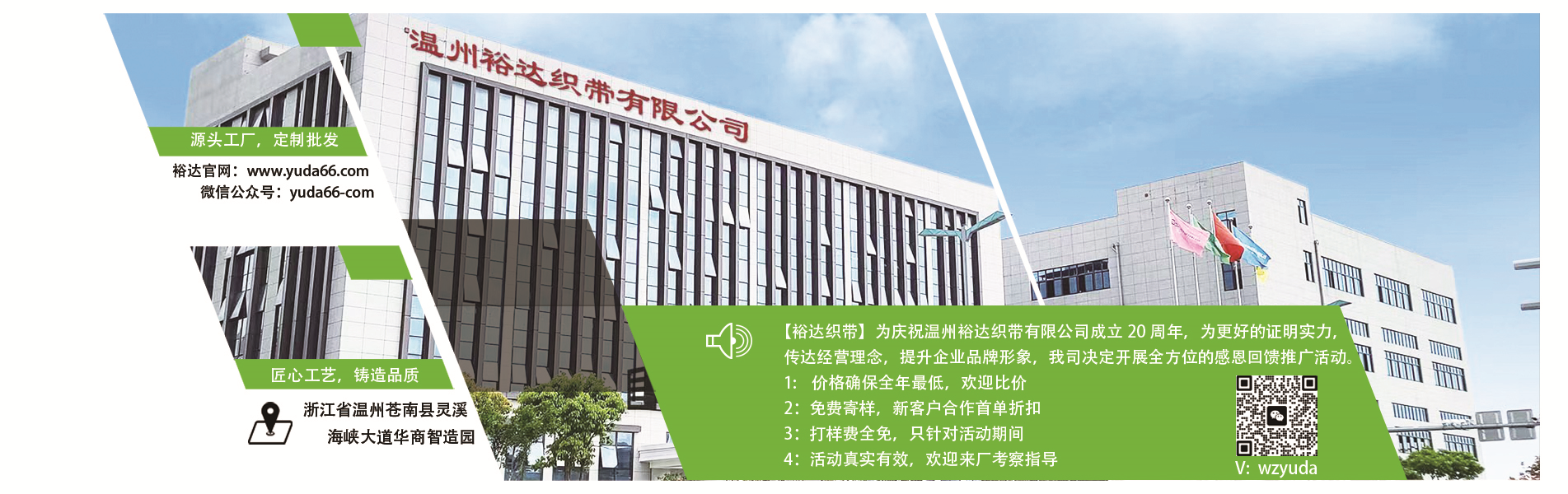 是一家集研發、生產、銷售各種織帶制品的專業性企業。主要產品包括:各式 無紡布提手帶、尼龍織帶、提花織帶、松緊帶、包邊帶、寵物帶、禮品掛帶、腰 帶、寵物用品帶、工業捆綁帶、吊裝帶、手機吊帶等多種產品系例。是眾多國際品 牌的戰略合作伙伴,產品覆蓋全國并出口世界。